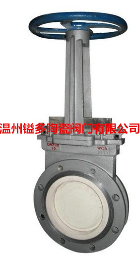 陶瓷闸阀,其特征是用陶瓷密封面组件取代普通闸阀的堆焊硬质合金密封面。按密封面配置可分为楔式闸板式闸阀和平行闸板式闸阀, 楔式闸板式闸阀又可分为: 单闸极式、双闸板式和弹性闸板式;平行闸板式闸阀可分为单闸板式和双闸板式。
